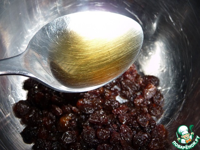 Изюм залить ромом, оставить настаиваться на 10 мин.