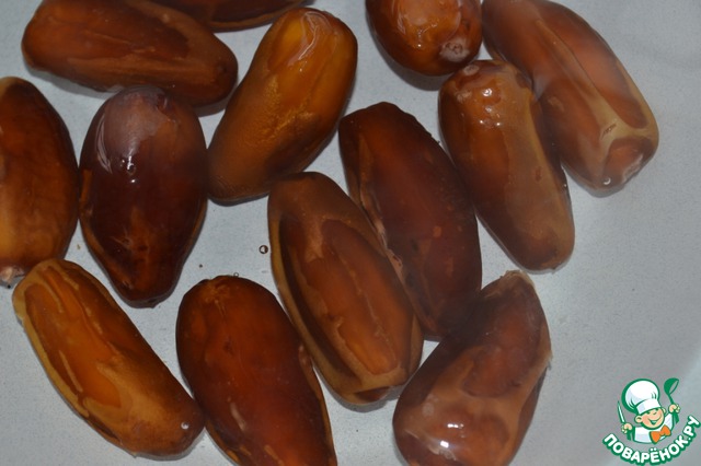 Финики помыть и залить 1 ст. кипятка на 10 мин