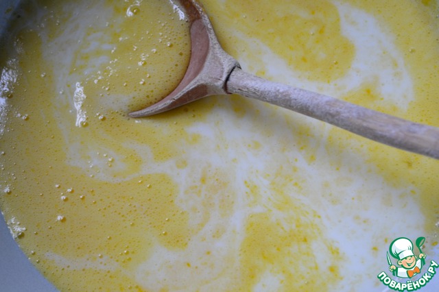 Яйца растереть с сахаром, добавить соль и перемешать.