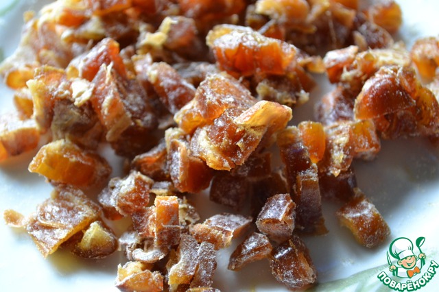 Финики обсушить на бумажном полотенце и порезать мелкими кусочками. Перемешать с небольшим количеством муки.