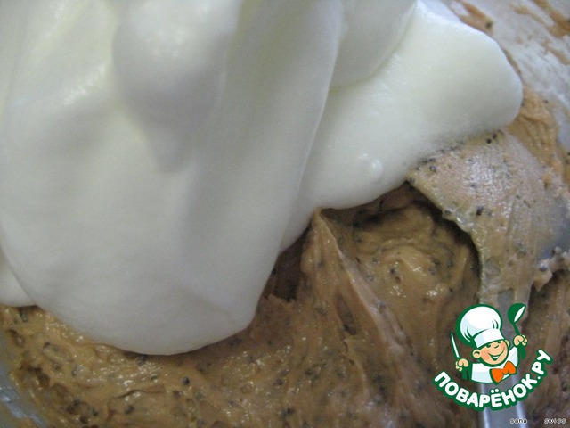 Осторожно перемешать со взбитыми в крепкую пену белками.