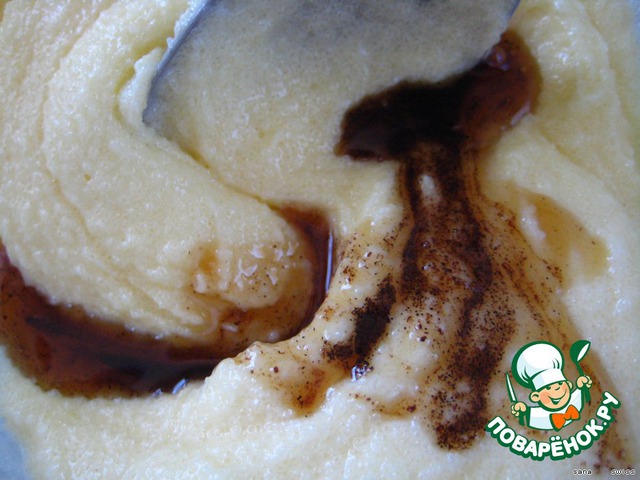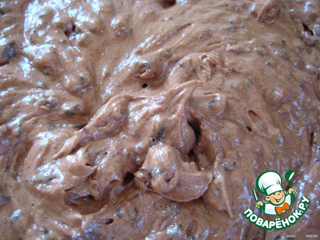 Добавить к желткам ликер, ванильный сахар, какао, мак.