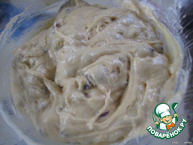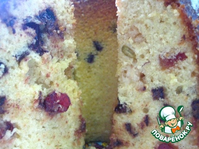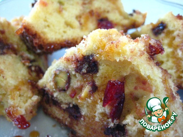 | Воздушный кекс с кусочками шоколада, засахаренных фруктов и фисташками, с ароматом ванили и сливочного ликера! |