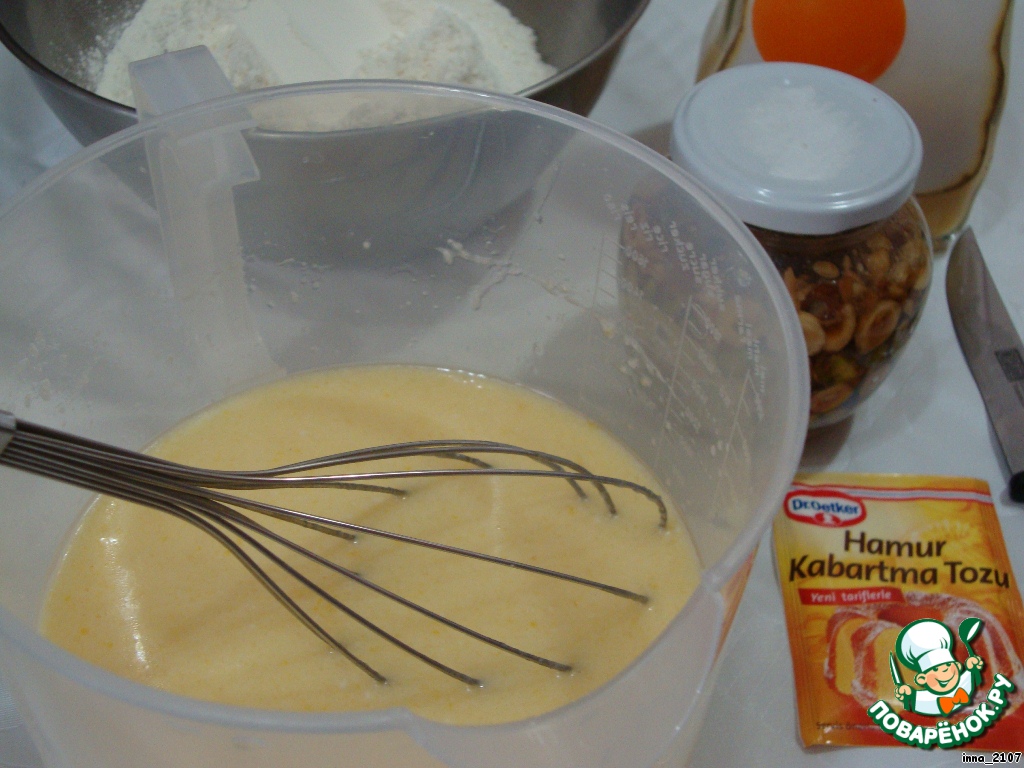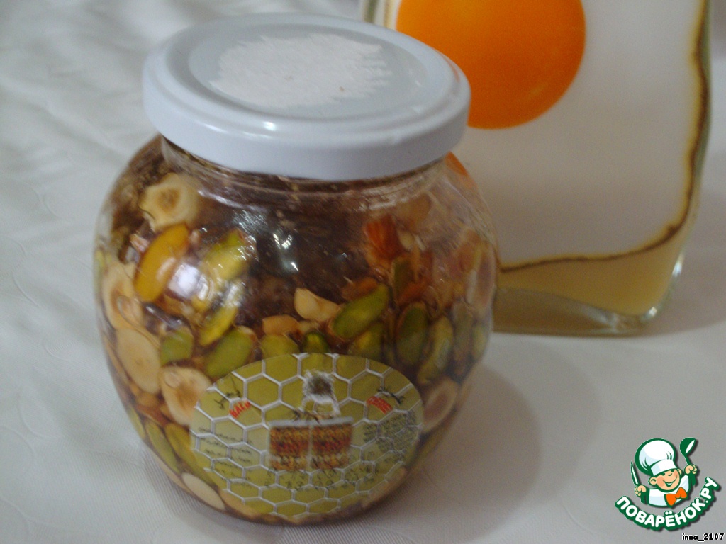 Хорошо размешать до исчезновения комочков, затем добавить орехи с медом и ликер.