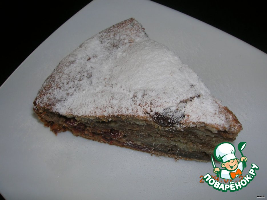 Рецепт прост в приготовлении, поэтому не стала делать пошаговые фото. Размягченное сливочное масло перетираем с сахаром, добавляем по одному яйца, взбиваем миксером. Добавляем сыр "Филадельфия", тщательно перемешиваем. Добавляем просеянную муку, разрыхлитель, перемешиваем, добавляем вяленую вишню. Далее тесто делим пополам. В половину теста добавляем какао, разведенное молоком. Берем форму, если с покрытием, то смазывать не надо. Выливаем, сначала, "белое" тесто, потом "коричневое" и, немного, перемешиваем палочкой. Ставим в разогретую духовку до 200 градусов на 40 минут. При подаче можно посыпать сахарной пудрой.