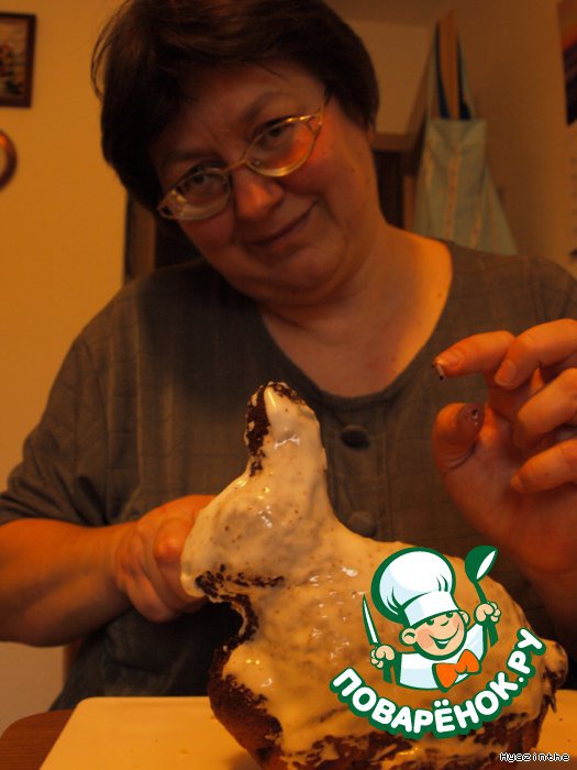 и заливаем тесто в форму, ставим в предварительно нагретую до 180*С духовку на 35-40 минут. Данное количество теста рассчитано на 1-го зайца. Выпеченный зайка остается в форме еще минут 10, потом аккуратненько вынимаем его из формы. Самое уязвимое место - уши, так и норовят отвалиться. У пары зайцев пришлось их прикрепить зубочисткой.