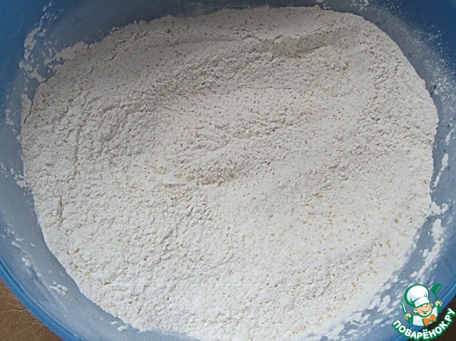 Смешаем 400 гр муки, 2 пакетика сухих дрожжей, 100 гр. сахара, 2 ч. л. соли, 0,5 ч. л. молотого кардамона.
