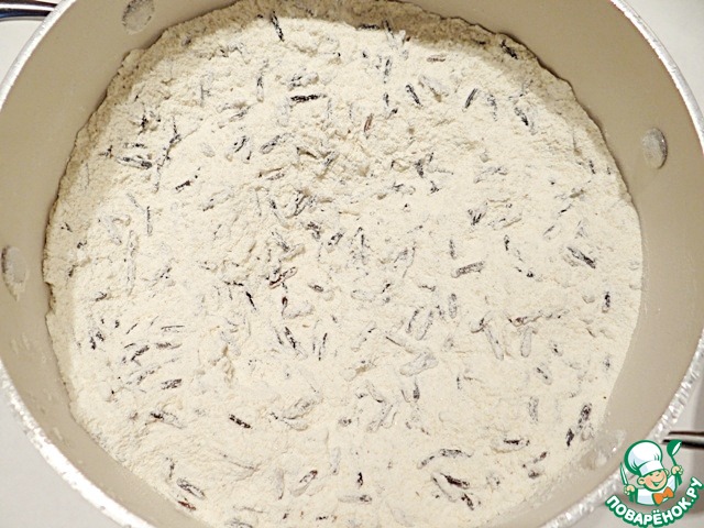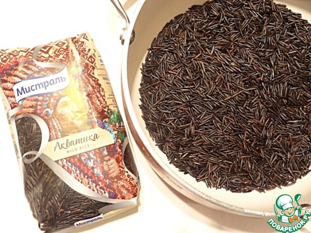 Для приготовления этого кекса я использовала дикий рис "Акватика" от ТМ "Мистраль". Засыпаю рис в кастрюлю, добавляю воду и довожу до кипения.