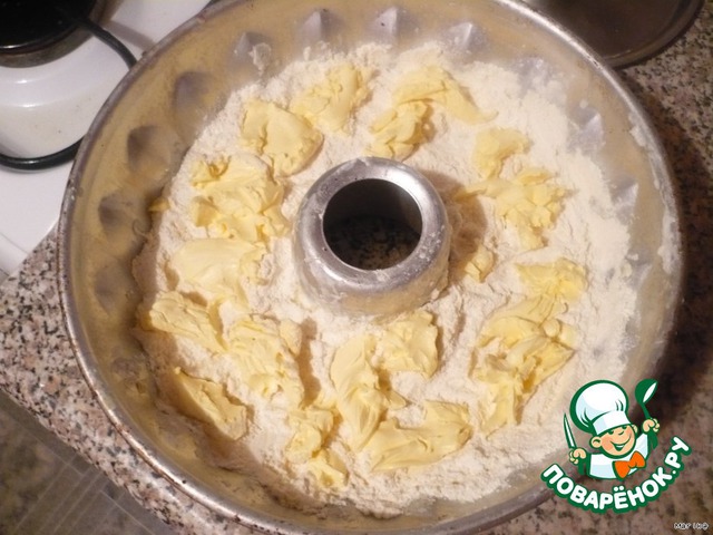 В смазанную форму насыпаем смесь слоем полсантиметра.