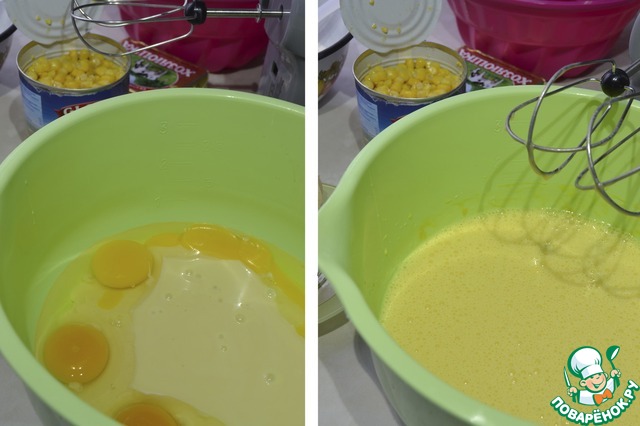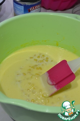 Добавить кукурузу (жидкость предварительно слить) и перемешать наше тесто.