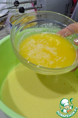 Добавить растопленный и остуженный маргарин. Хорошо перемешать.
