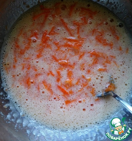 Введите тертую тыкву (половину на мелкой терке и половину на крупной), перемешайте.