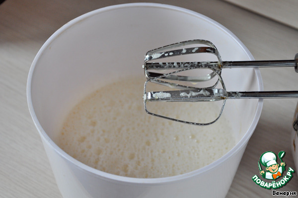 добавить мятное масло, молоко, разрыхлитель, муку и всё хорошо размешать.