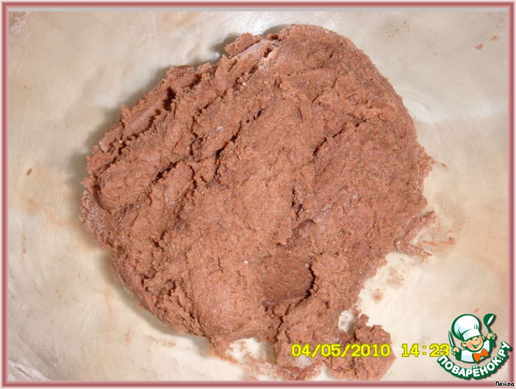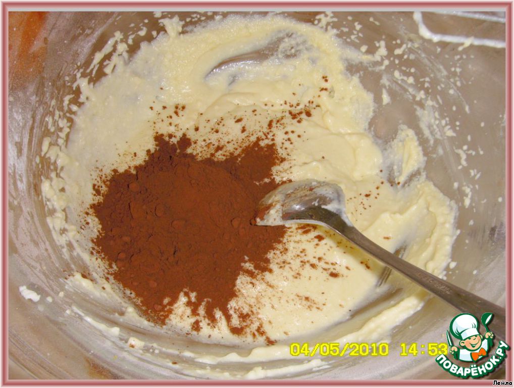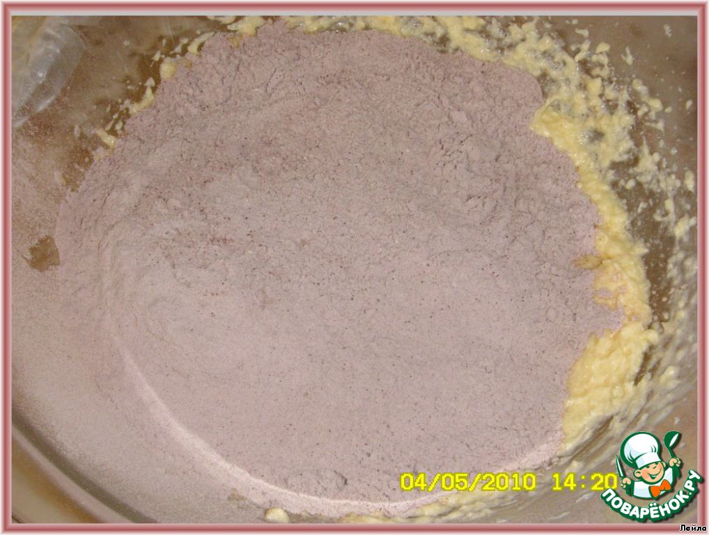Вначале просеять и смешать муку, какао, разрыхлитель, ваниль.
