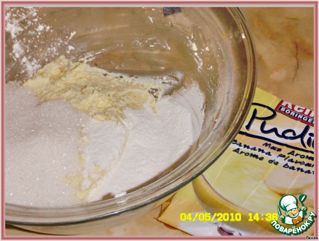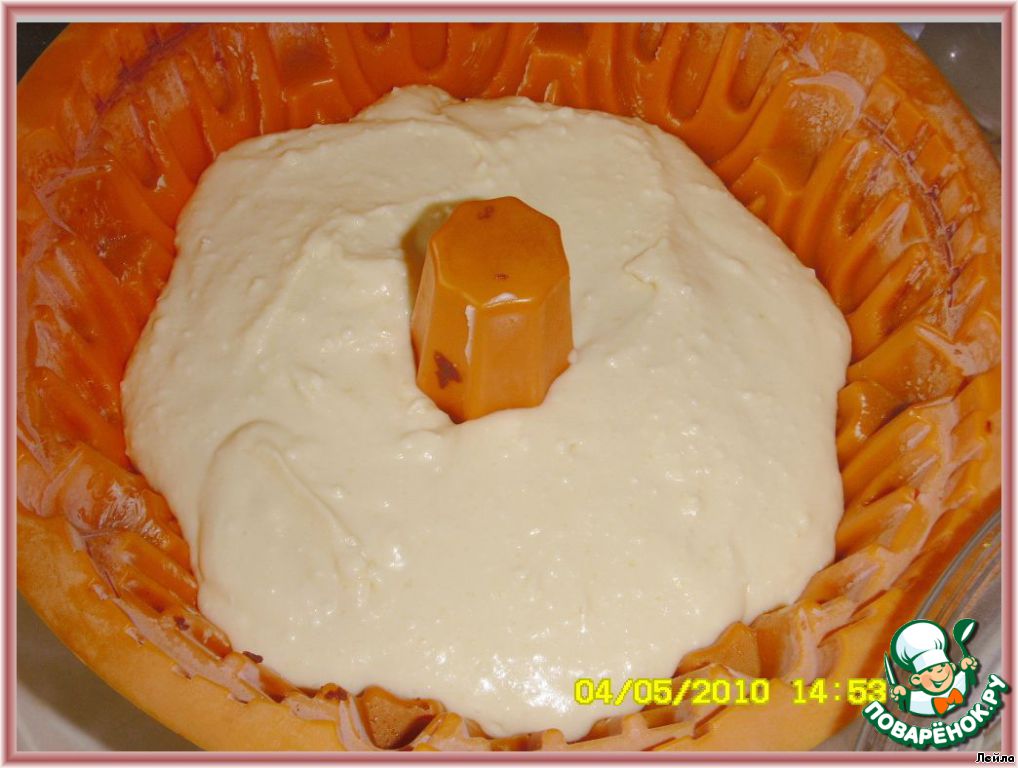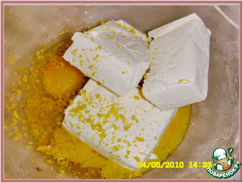 [b]Для начинки [/b] ручным миксером до однородности смешать творог, яйца, цедру.