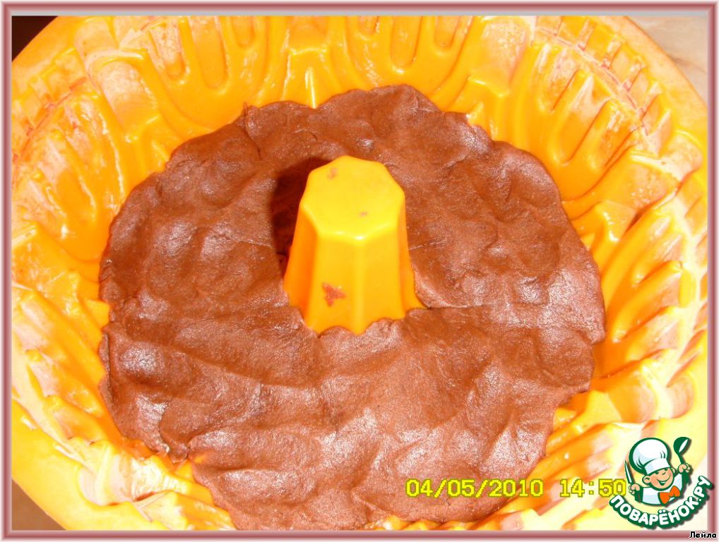 и уложить поверх белой массы. Можно придать начинке мраморность, размешав немного палочкой две начинки