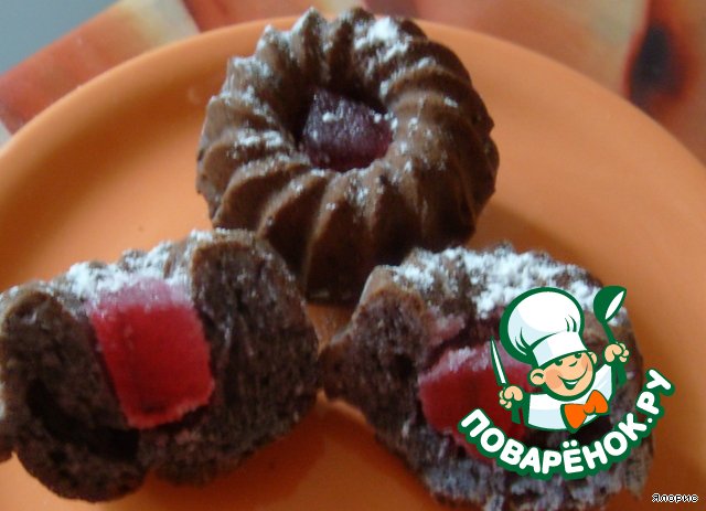 Запах стоит при выпечке умопомрачительный! Пахнет ягодками и специями очень аппетитно.В каждый кексик я вложила мармеладку и посыпала их сахарной пудрой. Можно наливать чай!