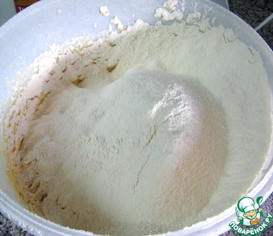 Просеять муку с разрыхлителем.