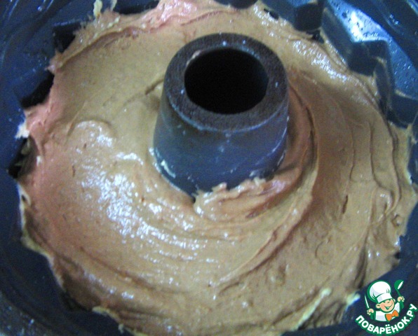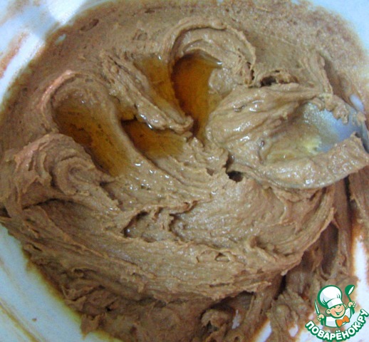 Во вторую половину теста добавить какао и ликер, перемешать.