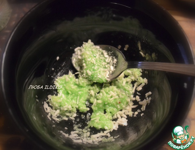 Теперь нужно сделать для будущей морковки - траву, на которой она типа растёт :-). Я натёрла (свой давнишний и подсохший) марципан на тёрке. Кстати, он отлично и очень долго хранится в холодильнике.