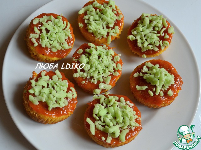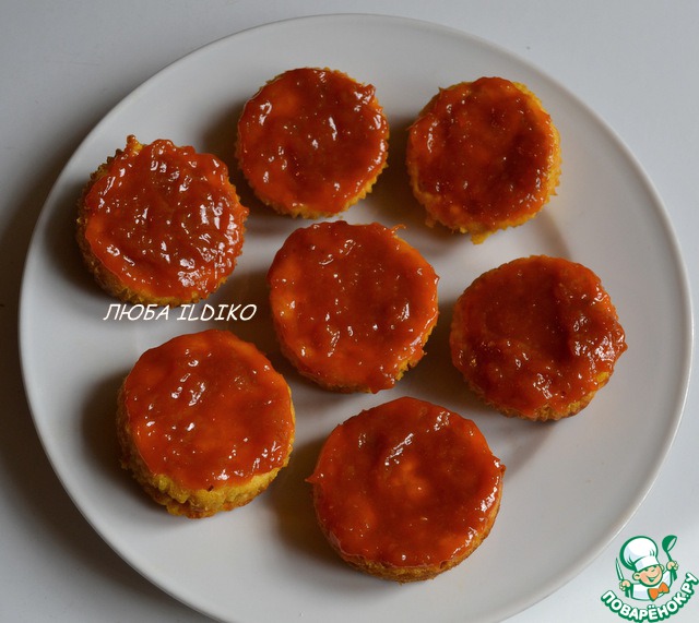 Кексы смазываем абрикосовым джемом, по-нашему - бороцк леквар.