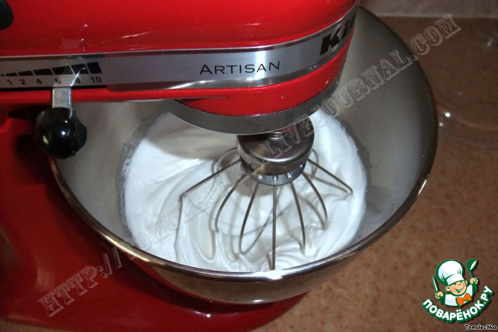 Взбиваем белки с сахаром до образования устойчивой пены.