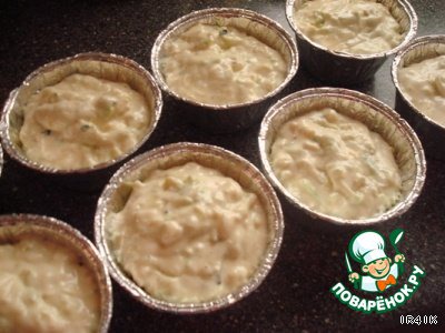 формочки смазываем маслом и посыпаем тертыми сухарями заполняем тестом на 3 /4 части.