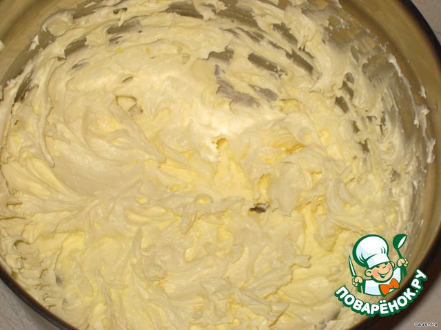 Застывшее масло взбить миксером в пышную белую массу. Взбивать примерно 5 минут.