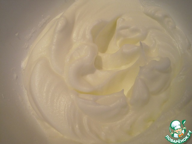 Белки взобъём со щепоткой соли в устойчивую пену.
