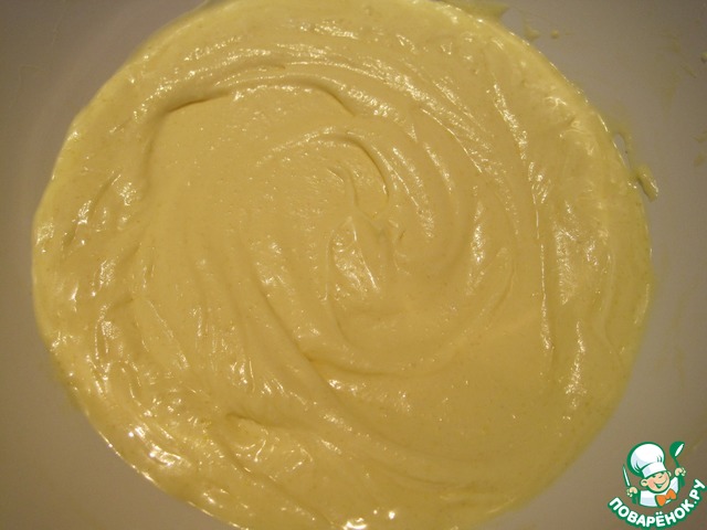 К желтковой массе добавим мягкое сливочное масло, цедру, сметану и снова взобъём до однородности.