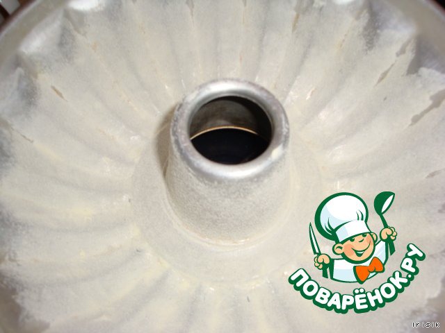 Форму для кекса, хорошо смажем жиром или маргарином и посыпем мукой грубого помола или сухарями.