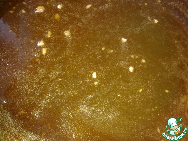 Насыпьте сахар на сковородку, нагрейте на среднем огне, должна образоваться карамель.