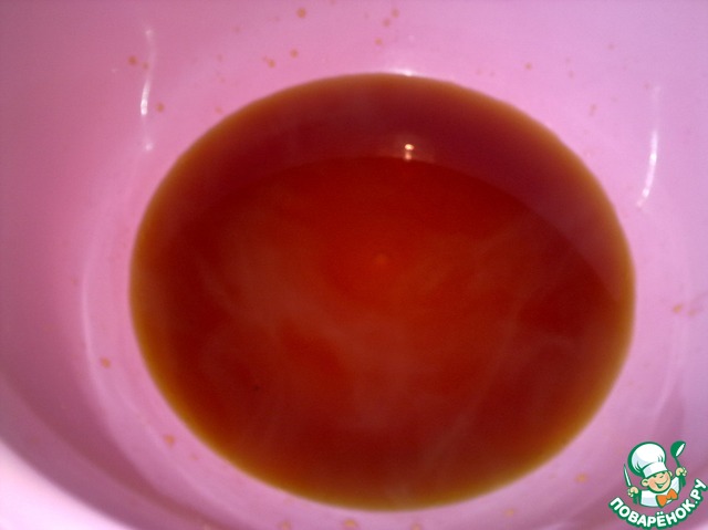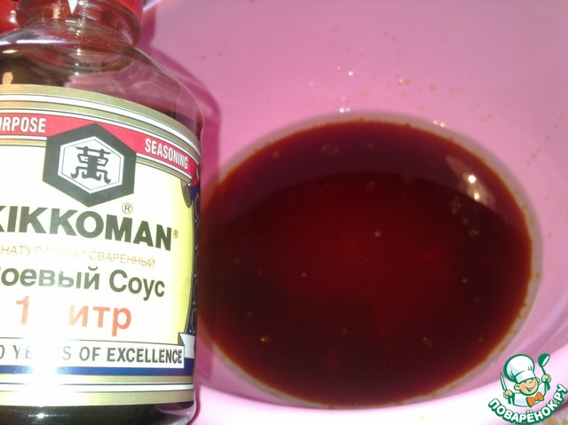 Добавьте в теплую карамельную воду растительное масло, ванилин, соевый соус ТМ "Kikkoman", смешайте.