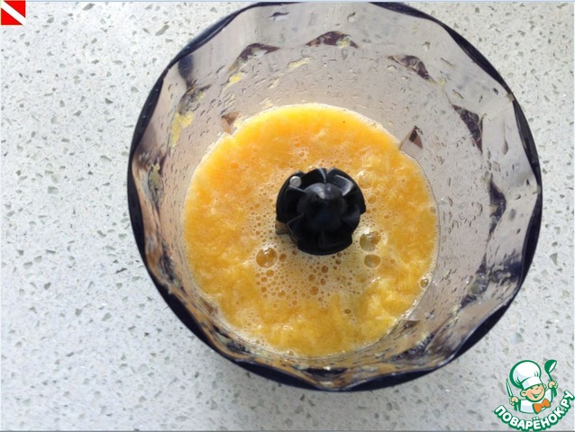 Измельчаем в блендере. От того, как вы его измельчите, зависит однородность вашего крема. Я не использую насадки с совсем маленьким отверстием для украшения, поэтому у меня иногда попадаются в креме небольшие кусочки апельсина.