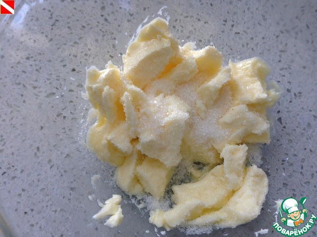 Размягченное сливочное масло смешиваем с сахаром (а еще лучше со сгущенкой 1:1)