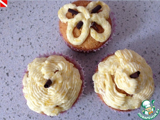А кексы в бумажных формочках украсила кремом сверху