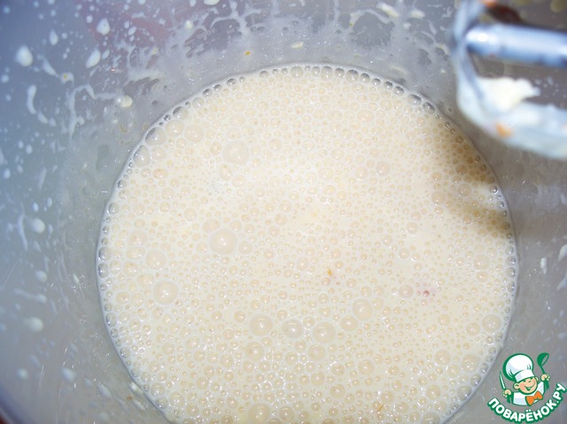 Молоко, йогурт, яйцо, растопленное масло и 5 ст. джема облепихового (Махеев) хорошенько взбиваем.