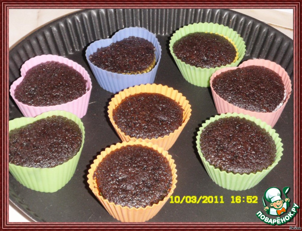 | Очень шоколадные и вкусные. Эти маффины (капкейки) по вкусу похожи на конфеты Ферреро Роше. Спасибо за рецепт Hopekisa Надюше jazzedcook. |