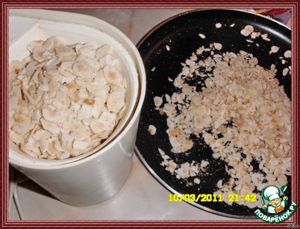 • 1 чашка молотых лесных орехов, заранее поджаренных в духовке и очищенных от кожуры.