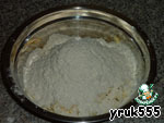 Приготовить крем: смешать творог и 0.5 стакана сахара до однородной массы.
