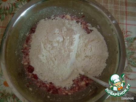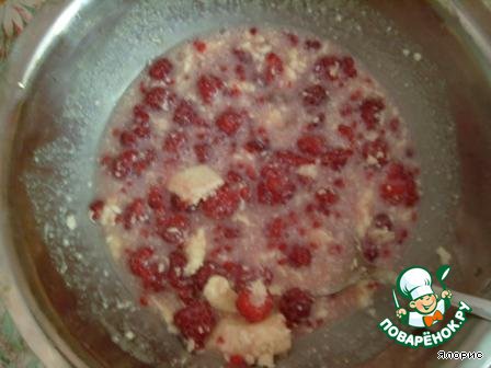 Добавляем стакан свежей малины и продолжаем взбивать.