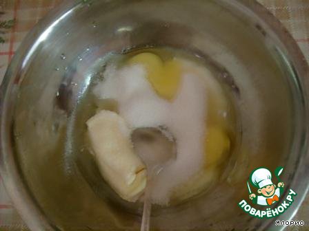 Пропорции даю на 2 порции кексиков - 12 штук. Для нас маловато, обычно пеку около 40. Взбиваем яйца, сахар, масло и сметану.