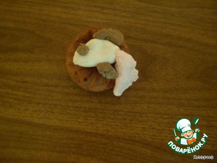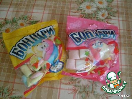У нас были две пачки разноцветного суфле, из которого по рецепту maj4ik мы и готовили мастику, из розового суфле - кусочек розовой, из желтого и синего - зеленую, из синего - синюю, из смеси с добавлением какао сделали коричневую.