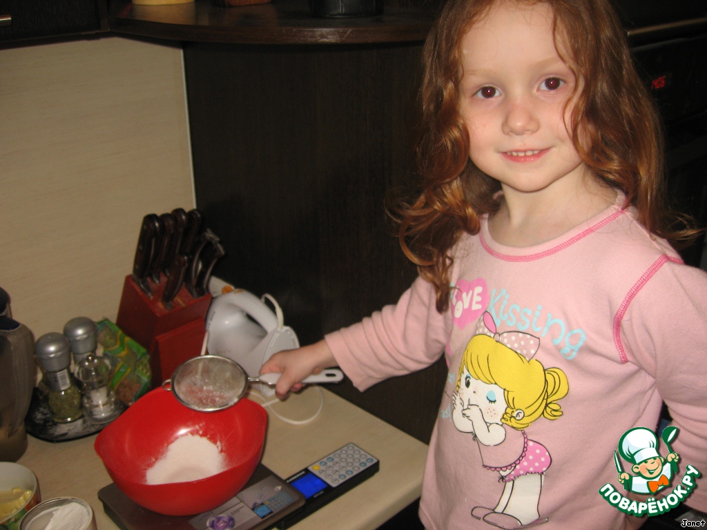 | Однажды моя доченька решила сама себе приготовить полдник. Я сразу еe предупредила, что она всe будет делать сама (только миксер я ей не доверила). Только мы закончили с нашими сладостями, как она изрекла: «Мама, а давай сейчас опять приготовим кексики!» Хотя мы только два съели! Так что, дорогие мамочки, нашим детям так нужна свобода действий, давайте мы дадим еe. Они намного талантливее, чем мы думаем… |