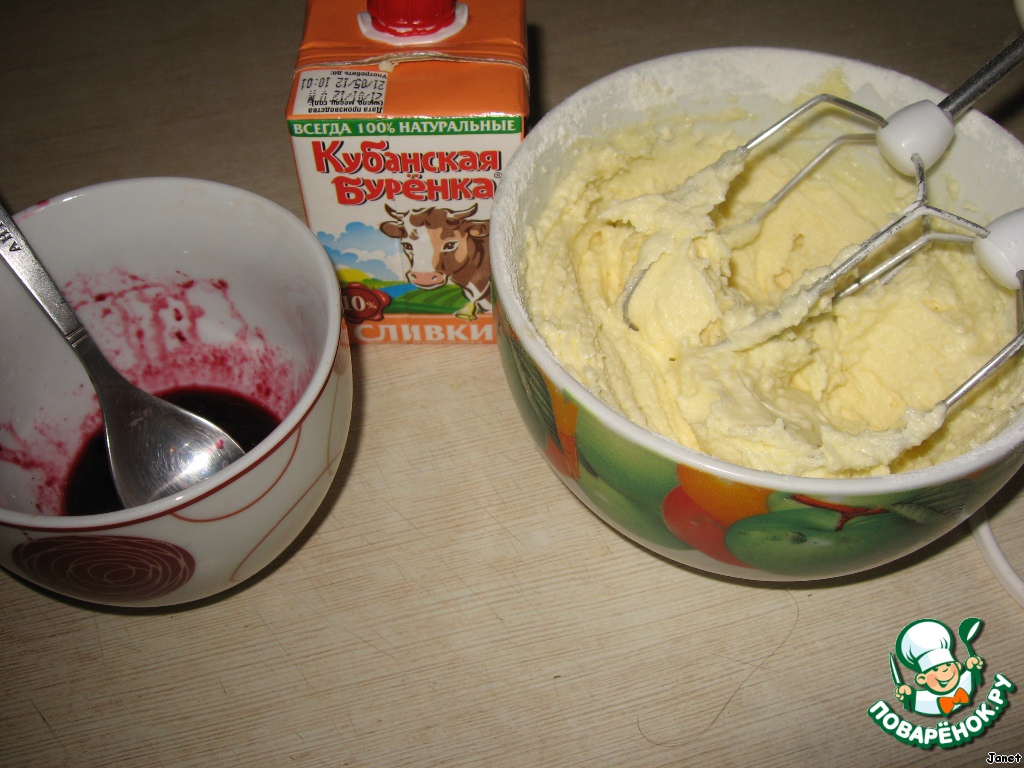 Крем я делала сама миксером: взбить масло, добавить сахарную пудру, затем сливки и сок.