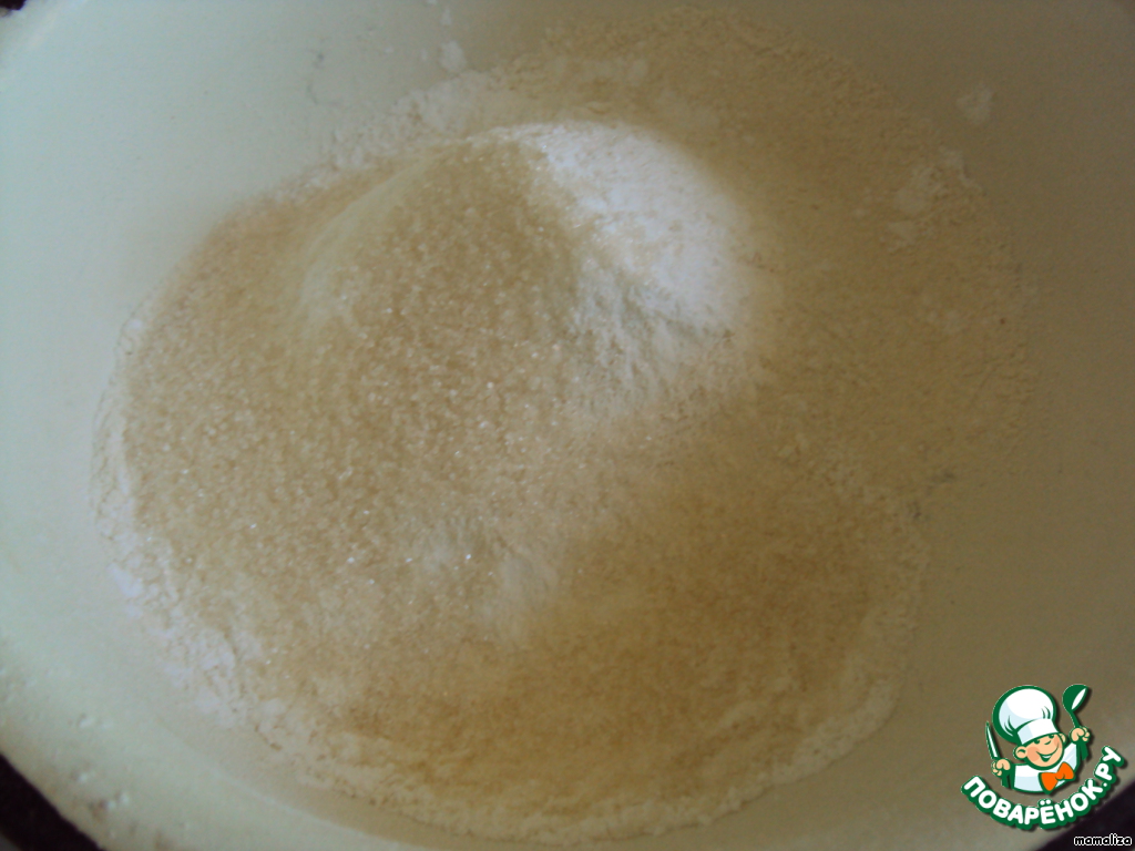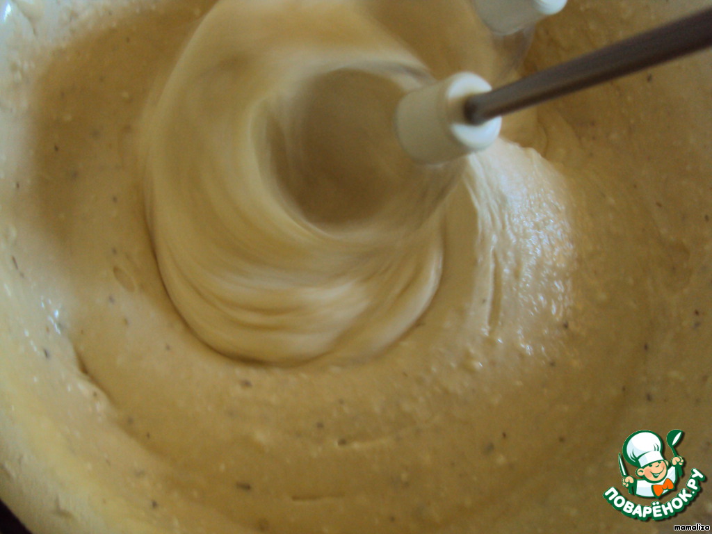 В сухую смесь добавить жидкую и вымесить тесто консистенции густой сметаны.