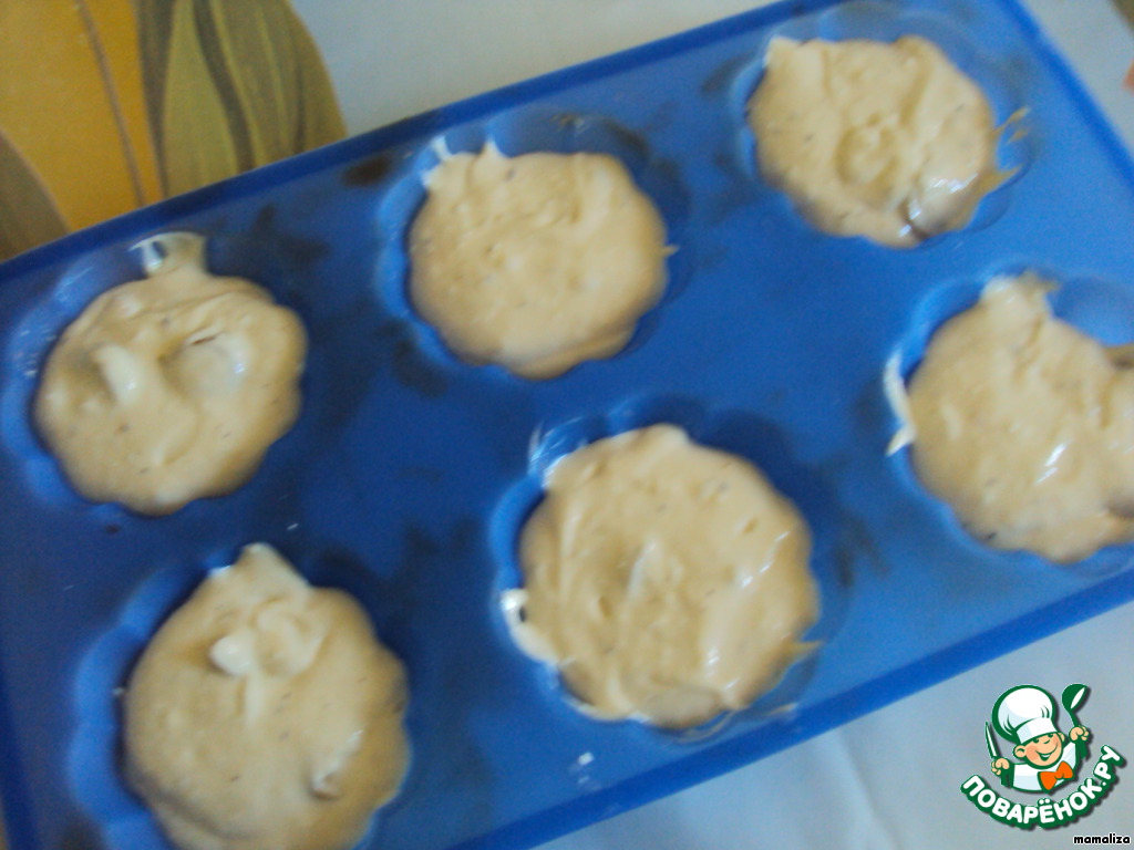 Выложить тесто в формы. У меня форма силиконовая. Она не требует предварительной смазки. Если формы другие, их нужно промазать маслом.