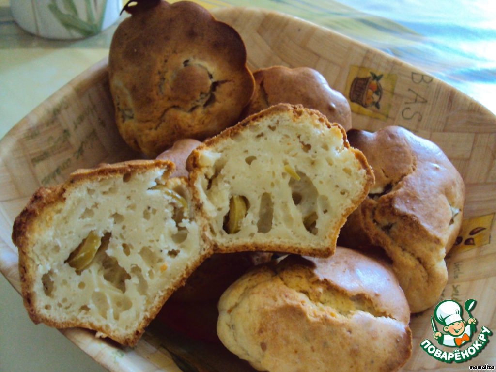 | Предлагаю очередной рецепт маффинов. Они ароматные, слегка солоноватые, с привкусом оливок. Годятся на завтрак, на легкий ужин, детям в школу, на природу и даже в качестве закуски к пиву. |