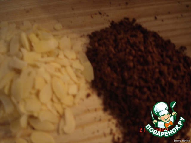 Натереть шоколад на крупной терке, измельчить миндаль.