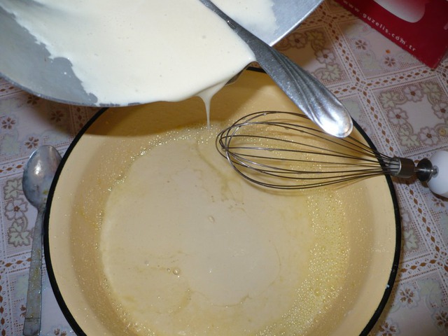 Половину нужной нам соды – 0, 5 ч. л. разводим с кислым молоком (кефиром, простоквашей, сметаной), оно начитает пенится, сюда вливаем предварительно сбитые яйца с сахаром, соль.